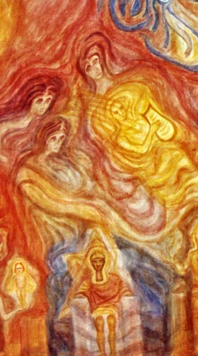 Der ägyptische Eingeweihte, überschwebt von seinen Inspiratoren / Ausschnitt aus der Deckenmalerei an der kleinen Kuppel des ersten Goetheanums / um 1918